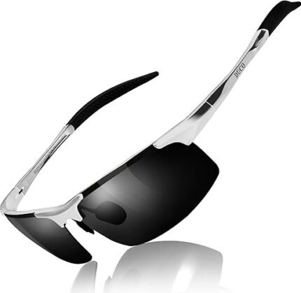 关于此商品 【TAC偏光镜片】UV400防护涂层有效过滤UVA和UVB辐射,提供全面的防晒保护。它消除了反射光或散射光,恢复了真实的色彩感知。TAC 偏光三醋酸纤维镜片具有抗冲击、耐刮擦、轻量化设计和耐用性等品质。 【AI-Mg 金属合金镜框】这款太阳镜采用 Al-Mg 金属运动镜框制成,牢不可破且耐腐蚀。可调节的柔软鼻托和灵活的金属铰链确保舒适贴合,而雕刻镜腿尖端提供防滑抓握和任意角度弯曲的能力。尽管结构坚固,但重量仅为 25 克,佩戴起来非常舒适。 【产品尺寸】镜片高度:40MM(1.57 英寸)- 镜片宽度:68MM(2.67 英寸) – 镜腿长度:126MM(4.96 英寸) – 鼻梁:16MM(0.62 英寸) –