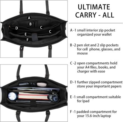 卓越的存储和智能组织:这款设计优雅的女士笔记本电脑包(尺寸:15.6 英寸 x 12 英寸 x 6 英寸)为所有必需品提供了充足的空间。它的隔层专为 A4 文档、文件夹、15.6 英寸笔记本电脑和 13 英寸平板电脑量身定制,每个隔层都有坚固的衬垫保护。这款笔记本电脑手提包采用智能内部布局,包括钥匙扣架以及用于存放水瓶和雨伞的专用口袋,确保每件物品都有其位置。 带多功能袋的笔记本电脑手提包:使用随附的多功能袋提升您的组织能力,旨在保护您的电缆和充电器等科技配件。适应性强的工作手提袋非常适合存放名片、文具和耳机等小必需品,让它们触手可及。 适用于任何环境:这款笔记本电脑手提包专为方便而设计,可从专业女性工作包无缝过渡到休闲鞋包或教师包。笔记本电脑钱包配有可拆卸和可调节肩带,提供舒适和时尚,确保您无论前往何处都能轻松携带必需品。 时尚与功能性的结合:这款女士笔记本电脑手提包采用优质防水涤纶和 PU 面料精心制作,采用精致刺绣制成,在耐用性和风格方面都脱颖而出。其加固的底座和侧垫不仅提供额外的保护,还有助于保持笔记本电脑包的形状,防止溢出。此外,底座上的保护螺柱可防止灰尘和磨损,保持包的原始状态。 典型的礼物:LOVEVOOK 女士笔记本电脑包融合了优雅、实用和多功能性,使其成为任何现代女性生活方式的珍贵配饰。无论是为教师等以职业为导向的专业人士,还是注重时尚的女性,这款笔记本电脑包都是送给女性无可挑剔的礼物选择。