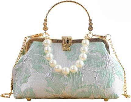 珍珠晚装包女士百合花图案复古刺绣花卉手拿包钱包晚装手提包单肩斜挎包