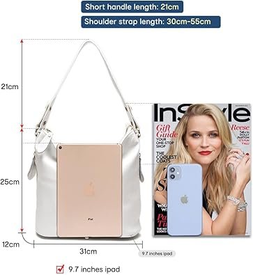 关于此商品 头层粒面皮革:我们的女式皮革钱包由柔软的头粒面皮革、精致的织物衬里和高品质的五金件制成,佩戴时间长。 结构:皮革单肩包采用银色顶部拉链开合(双拉头拉链),1 个拉链口袋,内部 1 个槽袋。轻松拿取您的 6.7 英寸手机、9.7 英寸 iPad、卡夹、口红、无线耳塞、化妆品、钥匙袋和日常用品,确保它们安全井井有条。 尺寸:11.41 英寸长 x 4.33 英寸宽 x 7.08 英寸高。我们的手提包配有可拆卸流苏添加金光闪闪。可作为手提包或单肩包使用,方便日常外出。 款式与场合:这款女士真皮钱包集实用性和时尚性于一身,适合各种场合和个人喜好。非常适合日常购物、约会、工作或旅行。 很棒的礼物选择:皮革手袋是在生日、感恩节、周年纪念日、元旦、情人节、妇女节等送给妈妈、妻子或朋友的绝佳选择。