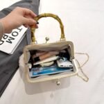 • 它配备了优质金属框架和独特的竹制顶部手柄。同时,还有可拆卸的链条带和可拆卸的珍珠串,可以随意搭配。