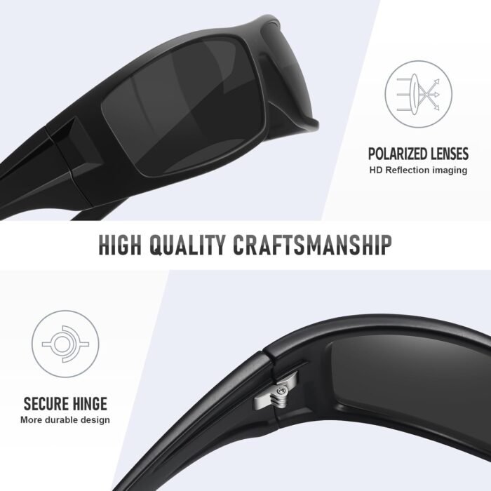 - 独特的运动太阳镜 – 非常灵活,金属 3+2 铰链完美贴合面部,坚固的高性能塑料材料使镜框坚固、耐用、牢不可破且超轻。