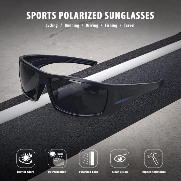 - 运动太阳镜套装 – 太阳镜 *1、拉链盒 *1、眼镜袋 *1、眼镜清洁布 *1、运动挂绳 *1、偏光测试卡 *1。它也是一个现成的礼品包装,是送给朋友和家人的美妙实用的礼物!