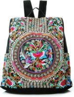 刺绣女士背包钱包,时尚帆布旅行防盗背包单肩包(花绣)
