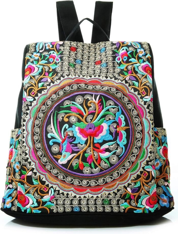 - 非常漂亮的 Flowers 刺绣女式背包钱包。特别的包,会受到别人的钦佩。很棒的礼物选择。