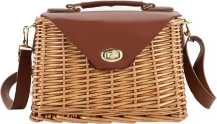 女式柳条手提包草编钱包,皮革肩带手工编织藤包,带衬里的夏季沙滩包 $278.00 Original price was: $278.00.$255.00Current price is: $255.00.