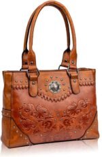 Be the first to review “女士手提袋大号西式钱包女士顶部提手单肩手提包复古压花 Concho 铆钉” Cancel reply