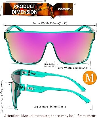 • UV400 高清 Lnes 技术 – FEISEDY 镜片可阻挡 99% 或 100% 的 UVB 和 UVA 射线。防刮擦,耐用且易于清洁。同时,高清镜头可以让您更好地观察阳光下的风景,确保视野清晰,视力更自然。让旅行无所畏惧,享受阳光。