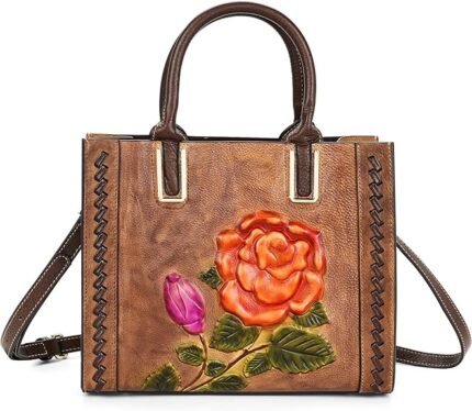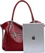 • 多功能设计:真皮手袋配有坚固的顶部提手和可拆卸的长肩带,提供多种携带方式。顶部提手、肩背或斜挎。顶部手柄高 7.48 英寸;长肩带长约 45.66 英寸至 51.57 英寸。
