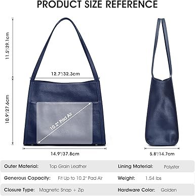 • 轻巧宽敞:14.9(长)x 5.8(宽)x 10.9(高)英寸。这款手提包采用轻巧的设计,重量仅为 1.5 磅。空间宽敞,可容纳 10.2 英寸平板电脑,共有 5 个口袋,可整理您的必需品