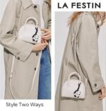 • 独特的时尚风格:独特的汉堡造型设计,搭配可爱的熊猫吊坠让你心情愉悦,让你的包包独特可爱,包包上的LA’FESTIN印花增添了标志性的风格。携带这款皮革手提包,让您在街头脱颖而出,是一款时尚伴侣,充分体现您的时尚前卫感。