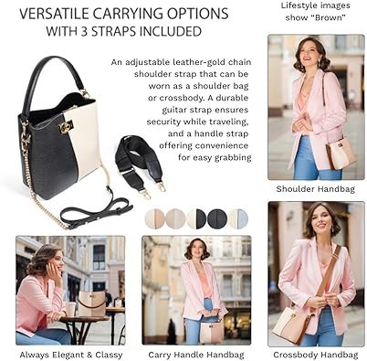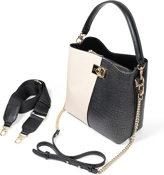 Home Accessories 女士皮革斜挎包 – 女士皮革水桶包 – 3 条肩带、3 个隔层和 3 个封口