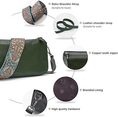 • 【百搭风格旅行】这款皮革单肩包为您提供两条不同的肩带。简约的皮革表带适合工作和正式场合,散发着精致的气息。同时,另一条波西米亚风格的表带为旅行、休闲、购物和约会增添活力,将每一刻都变成丰富多彩的美好体验