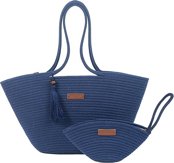 Home Accessories 女式大号编织手提包和小号手提包套装,海滩泳池周末旅行棉绳单肩包,必需品钱包
