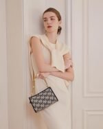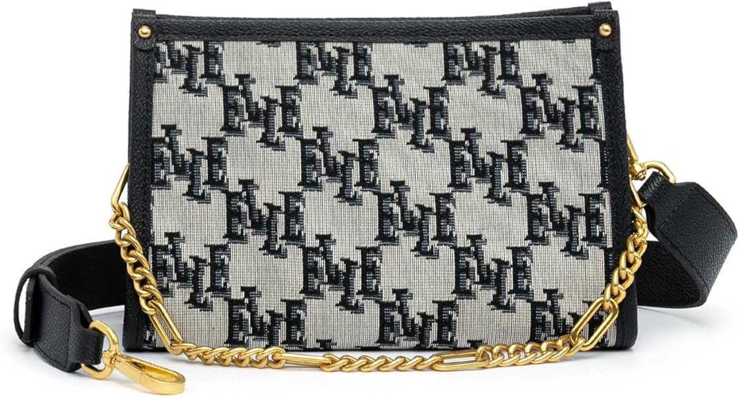 - 细节:ELLE 的 Monogram 图案。提花工艺品。拉链开合。内部插袋和拉链口袋。