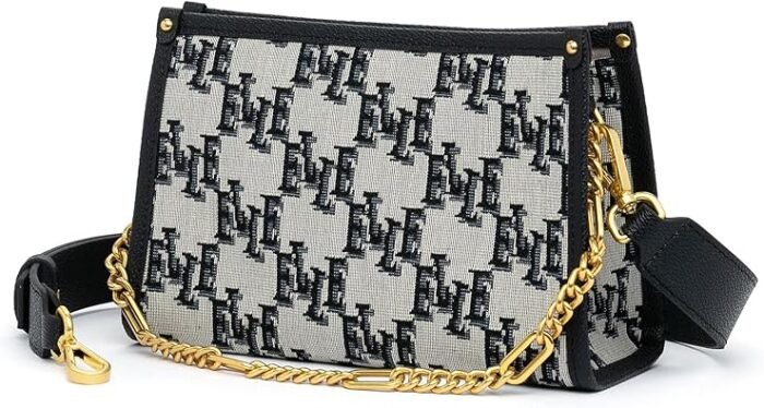 - 固定金属链条手柄(长度:6.3 英寸);可拆卸和可调节斜挎带 32.28 英寸~43.31 英寸(长度:20.47 英寸)。