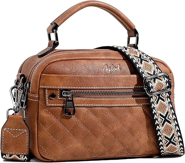 • 【柔软优质纯素PU皮革】AGLOD女式斜挎包采用优质人造皮革、金属配饰、帆布长肩带和织物衬里制成,质地独特。所有这些精湛的工艺使这款斜挎包没有任何异味,拉链光滑,可长时间使用,不易断裂。