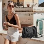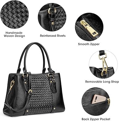 • 3-WEARING WAYS &; LEATHER 编织设计:可拆卸可调节的长肩带(40.16“-49.6” 长度)使这款手提包有更多的随身选择(顶部提手、单肩、斜挎包);手工皮革编织设计使这款皮革钱包更加时尚迷人
