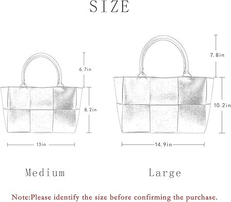 • 尺寸:此包为大尺寸:14.9“ x10.2” x 4.0“ 英寸,离合器尺寸:12.5” x 7.5“ x 3.5” 英寸(请在确认购买前确定尺寸)。这款编织袋可用作钱包、手提包、手提袋和单肩包。适合女士、女士和女孩的完美手提袋,非常适合日常使用。