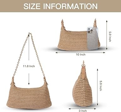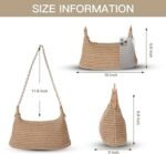 • 这款稻草斜挎沙滩包的尺寸约为 5.9 英寸高 x 3.1 英寸宽 x 10.2 英寸深,手柄长度为 11.9 英寸,结构紧凑但足够宽敞,可以舒适地携带您的日常必需品