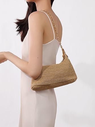 • 这款草编女式钱包配有别致的金属链带和安全的顶部拉链开合,将时尚与实用融为一体,非常适合海滩日和城市郊游。