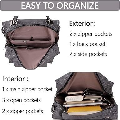 • ✿易于整理 – 大容量,带有 10 个口袋,可让您的所有物品井井有条。 外部正面有 2 个拉链口袋,1 个防盗后拉链口袋可存放您的贵重物品,2 个侧袋可存放水瓶、雨伞。 内部有 1 个主拉链隔层,可容纳 9.7 英寸 iPad、平板电脑或 10 英寸笔记本电脑、3 个插袋和 2 个拉链袋,让您的物品井井有条。