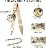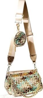• 最佳尺寸 – 手提包配有可拆卸可调节的吉他带和 1 条金色链带,可以更新您的钱包,看起来并不乏味。多功能斜挎包配有一个大钱包(尺寸:9.8 英寸宽 x 5.7 英寸高 x 2.7 英寸深;内部:1 个插袋,1 个拉链口袋),较小的钱包(尺寸:8.6 英寸宽 x 5.1 英寸高 x 2.3 英寸深)具有 3 个卡槽,方便整理和圆形拉链零钱包(尺寸:3.5 英寸宽*3.5 英寸高)