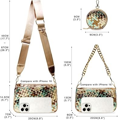• 特殊设计:您将获得一个大钱包、一个零钱包、一个漂亮的斜挎包,并搭配 1 条金色链条带和 1 条可调节斜挎带,可以轻松使钱包从斜挎包到过肩钱包再到手拿包。这款带零钱包的斜挎包优雅轻便。它适合任何场合或搭配任何衣服