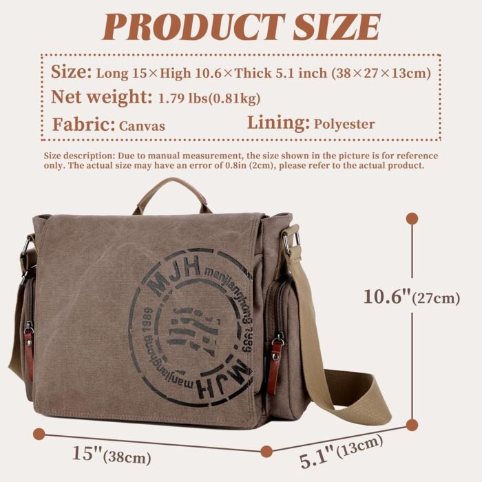 - 大容量:尺寸为 15 x 10.6 x 5.1 英寸(38 厘米*27 厘米*13 厘米),使用这款多功能斜挎包将您的 13 英寸笔记本电脑带上路。宽敞的主隔层非常适合存放您的钱包、支票簿和电子设备,或您的一日游必需品,侧袋可放置水瓶。后拉链口袋设计具有防盗功能,可安全保护您的物品