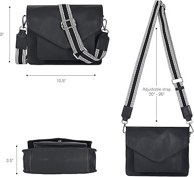 • ✅ 尺寸和存储:如果我们谈论尺寸,这款翻盖开合包尺寸为 9 x 10.5 x 3.5 英寸,配有 26 英寸的可调节肩带。它还具有隐藏式内部拉链隔层和移动支架。