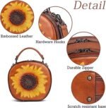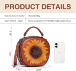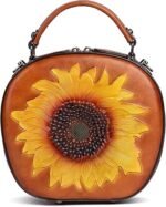 真皮复古女包:牛皮斜挎包 – 向日葵压花手提包