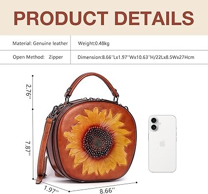 Be the first to review “真皮复古女包:牛皮斜挎包 – 向日葵压花手提包” Cancel reply