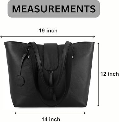 • 尺寸:19 英寸宽(上侧)/14 英寸宽(底部)x 12 英寸高 x 5 英寸深,带子长度为 11 英寸。这款包可舒适地容纳当前的 iPhone、A4 活页夹、15 英寸笔记本电脑、平板电脑、小雨伞以及化妆品或钱包等必需品。这款手提袋最多可容纳 11 磅(5 公斤)。