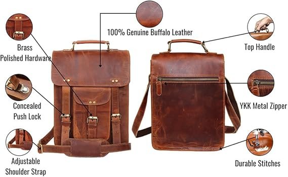• 优质材料皮革斜挎包:这款小斜挎包采用优质硬蜡水牛皮革制成,并采用耐用的蜡线精心缝制,确保使用寿命。坚固的涤纶内衬和坚固的结构使我们的皮包即使在装满时也能独立站立。