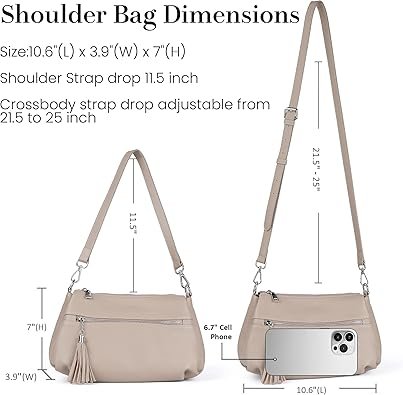 • 完美尺寸:尺寸为 10.6 英寸(长)x 7 英寸(高)x 3.9 英寸(宽),肩带长度为 11.5 英寸,斜挎肩带可在 21.5 至 25 英寸之间调节,可在肩背和斜挎款式之间轻松切换。它是约会、工作、购物和旅行的完美尺寸