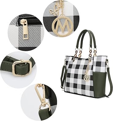 • 别致时尚的 2 件套装:Mariely 设计师手提包展现了女性钱包的最佳状态,适合工作和购物的时尚休闲!奢华的金色装饰和装饰性M钥匙扣让它更加时尚!有多种华丽色调可供选择,选择与您的连衣裙相匹配的颜色。