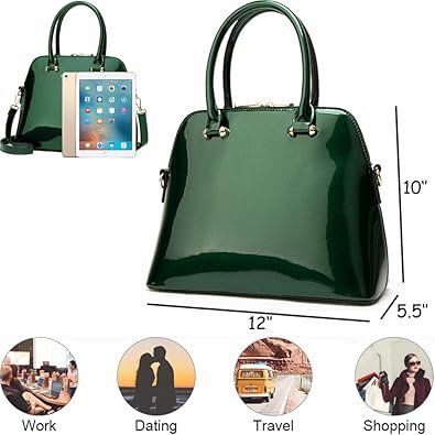 • 【材质】-经典实心圆顶挎包,耐用且优质 100% 光泽漆皮材质和涤纶内饰。外部防水,确保长期使用。
