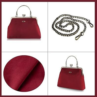 • 设计— 金属边框+吻锁开合+玫瑰花图案+轻巧复古优雅。Kiss 锁钱包和手提包、1950 年代女式复古钱包、复古女式刺绣手提包、复古风格女式钱包和手提包、伴娘婚礼手拿包。