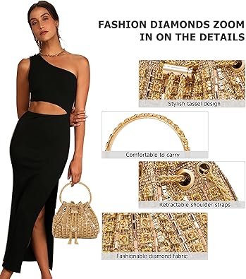 • 特点:我们的奢华闪光晚装手拿包别致而独特,配有金属环形手柄、可拆卸肩带和充满耀眼的水钻,全方位闪闪发光的外观,非常时尚,让您在人群中脱颖而出。流苏和抽绳设计 – 使用流苏钩和抽绳保护您的包,并牢固地张紧链条。这款晚装手拿包将让您在任何场合都令人眼花缭乱。