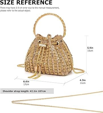 • 容量:水钻钱包的尺寸为 6.69(L)*4.33(W)*5.91(H) 英寸。钻石手提包足够宽敞,可以容纳大多数需要的物品,例如手机、卡片、钱、车钥匙、小钱包、眼镜、紧凑型镜子、唇彩、粉末和一包口香糖。