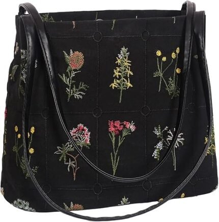 女士花卉帆布钱包,刺绣单肩手提包,带 Pu 手柄的小型日常工作包,夏季手提包礼品 $268.00 Original price was: $268.00.$238.00Current price is: $238.00.