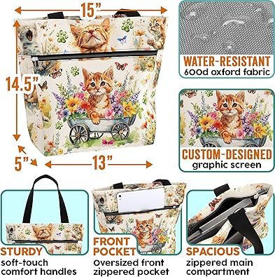 Home Accessories 防水手提袋,带口袋和拉链,适合工作。女士单肩包。送给爱猫主人的礼物。
