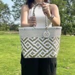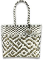 • 耐用的手工编织设计:这款环保手提包采用优质再生塑料面料制成,展示了独特的手工编织风格,将坚固性与墨西哥传统工艺相结合,确保使用寿命和美观性