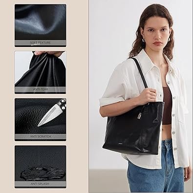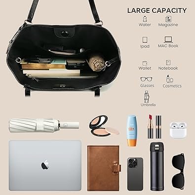 Home Accessories 黑色皮革女式托特包:带肩带的大号单肩包 – 时尚手拿包,非常适合日常使用和社交场合