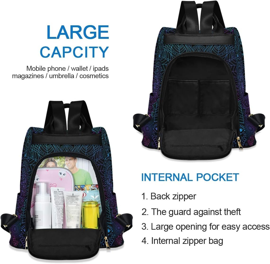 ALAZA 波西米亚曼陀罗民族波西米亚背包钱包女式防盗时尚背包单肩包
