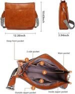 • ❤️ 【完美单肩包尺寸】12.2“ x 3.94” x 10.63“(长 x 宽 x 高)。斜挎包的尺寸非常适合大多数女性!尺寸时尚,复古风格使其成为适合多种不同用途的完美包包!大量口袋:1 个带磁性按钮的前开放式口袋(用于 ipad)、1 个后拉链口袋(用于手机)、1 个主口袋(用于存放杂志、雨伞、笔记本等)和 1 个拉链口袋以及内部的其他两个贴袋(用于存放口红、卡片、钥匙等)。