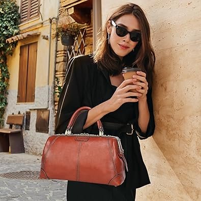 Home Accessories Banuce VIntage 全粒面意大利皮革手袋女式医生包钱包女士挎包
