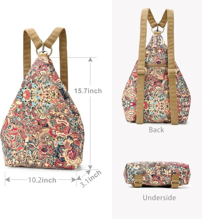 - 【原创设计】内部:安全拉链、手机包、卡包。背面:拉链口袋可快速取放手机、钱包和其他物品。肩带长度可自由调节。它是一款时尚背包,也是一款胸部背包。原创的波西米亚风格图案非常有个性,圆滑时尚,避免了和别人背同一个包包。这款背包非常适合工作、购物、旅行、去海滩和进行其他活动。