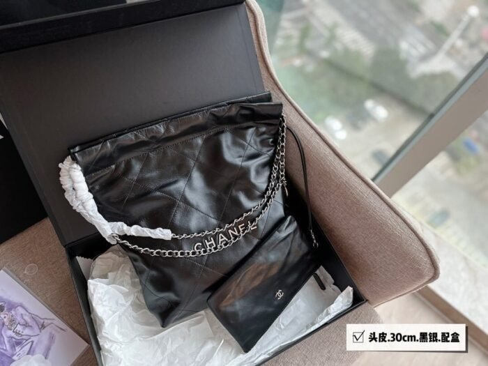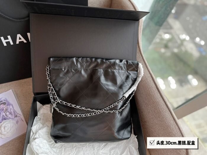 30*32cm (small) Black silver natural color chanel 22bag is cooler! Oil wax leather is very resistant to making high-grade feeling full garbage bag