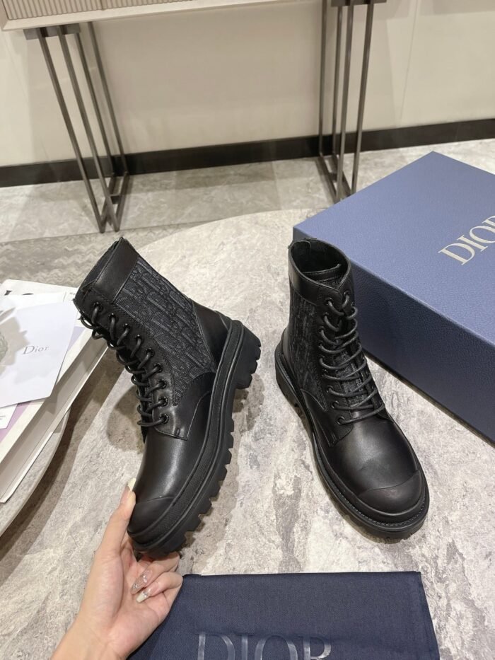 The Dior Ex lorer ankle-length boots are crafted in black smooth cow leather with a beige and black Oblique print stitching on both sides. With sheep leather full lining material. create a comfortable wearing experience. The rear zipper opens and closes for easy wearing and removing. Decorated with DIOR logo patches. with notched rubber soles and reinforced rubber toe in the same color. more sophisticated. It can be paired with various pieces of the season for a stylish look. With the exquisite packaging of the counter 🛍📦